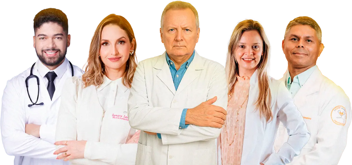 Nutrólogos, enfermeiros, nutricionistas e fisioterapeutas trabalhando juntos para oferecer um tratamento completo e personalizado para cada paciente.